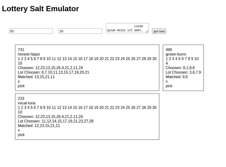 Генератор лотерей, для выбора случайных значений необходима текстовая соль